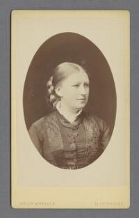 Porträtt föreställande Henriette Boström Fritt Upphov Hansen & Weller Utgivningsår 1870 Kategori BildBilderPorträttFotografier (påsiktsbilder)Visitkortsfotografier