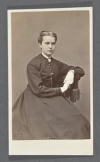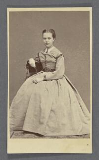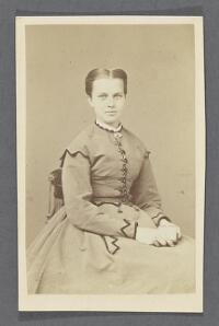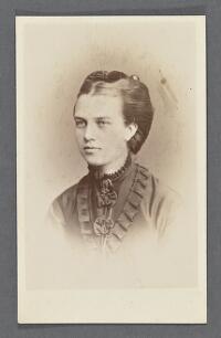 Porträtt föreställande Henriette Boström Fritt Upphov Angel, Selma, 1846-1933 Utgivningsår 1870 Kategori BildBilderPorträttFotografier (påsiktsbilder)Visitkortsfotografier