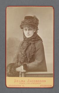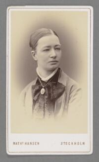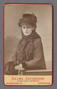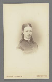 Porträtt föreställande Hilma Boström Fritt Upphov Jacobsson, Selma, 1841-1899 Utgivningsår 1870 Kategori BildBilderPorträttFotografier (påsiktsbilder)Visitkortsfotografier