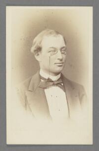 Porträtt föreställande läroverksadjunkten Nils Boström Fritt Upphov Angel, Selma, 1846-1933 Utgivningsår 1873 Kategori BildBilderPorträttFotografier (påsiktsbilder)Visitkortsfotografier
