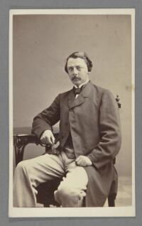 Porträtt föreställande apotekaren Adolf Boström Fritt Upphov Eurenius & Quist Utgivningsår 1867 Kategori BildBilderPorträttFotografier (påsiktsbilder)Visitkortsfotografier
