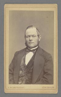 Porträtt föreställande statsministern Erik Gustaf Boström Fritt Upphov Hansen, Mathias, 1823-1905 Utgivningsår 1866 Kategori BildBilderPorträttFotografier (påsiktsbilder)Visitkortsfotografier