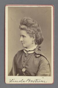 Linda Boström Fritt Upphov Peterson, J. P., 1834-1894 Utgivningsår 1800 Kategori BildPorträttFotografierVisitkortsfotografierBilderFotografi, positiv