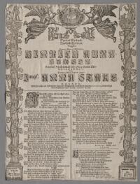 Dygders wyrdnad, brudfolkz prydnad, betrachtad då ehreborne, achtade och wälförståndige Hinrich Abrahamson, kiöp- och handelsman vthi stapelstaden Åbo, brudgummen, medh ehreborna, kyska och dygderijka jungfru jungf. Anna Stake, bruden, widh förnähme och hederwärde personers bijwistande, förmedelst christöflige ceremonier, ett ovplösligit echtenskapz-förbund ingick i Åbo den 9. novembris åhr 1686.