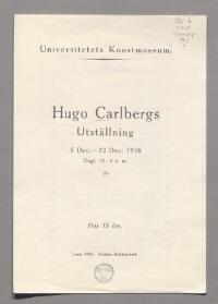 Hugo Carlbergs utställning 5 dec. - 22 dec., 1926. Fritt Upphov Carlberg, Carl David Hugo Utgivningsår 1926 Kategori Ej skönlitteratur