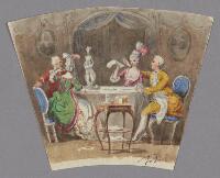 Två par iklädda 1700-tals kläder samtalar runt ett bord Fritt Upphov Dardel, Fritz von, 1817-1901 Utgivningsår 1800 Kategori BildAkvarellerBilder