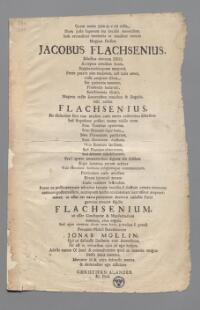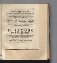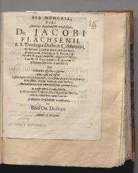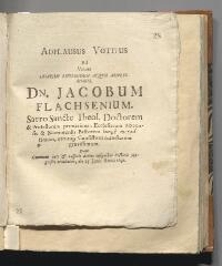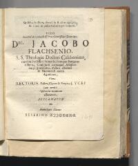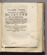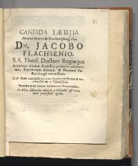 Gratulatio votiva, dum admodum reverendus & præclarissimus dominus m. Jacobus Flachsenius, ad amplissimam theologicam professionem deo duce, solenniter introduceretur anno M DC LXXIX, die XVIII. Decembris.