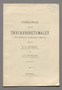 Handlingar rörande tryckfrihetsmålet inför Filipstads rådhusrätt i juli 1888 emellan K. A. Grundel, läroverkskollega i Kristinehamn, och J. P. Rydelius, utgifvare af »Wärmlandsberg» (andra häftet.)