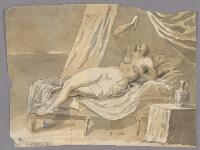 Kvinna liggande i säng med lyft dolk Fritt Upphov Hörberg, Pehr, 1747-1816 Utgivningsår 1788 Kategori BildBläck- och tuschteckningarLaveringarBilder