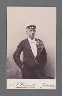 Porträtt föreställande Axel Schmidt som student Fritt Upphov Hagnell, Anders Johan, 1862-1925 Utgivningsår 1916 Kategori BildBilderPorträttFotografier (påsiktsbilder)Visitkortsfotografier