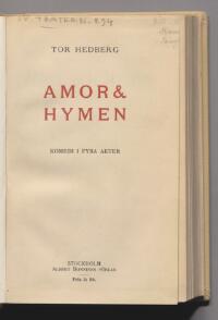 Amor och Hymen, komedi i fyra akter Fritt Upphov Hedberg, Tor, 1862-1931 Utgivningsår Ingen uppgift Kategori Skönlitteratur