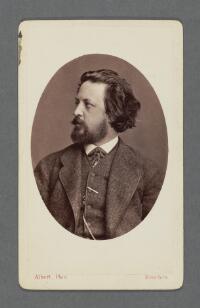 Porträtt föreställande den tyska författaren Paul Heyse Fritt Upphov Kuntzmann, H. Utgivningsår 1860 Kategori BildBilderPorträttFotografier (påsiktsbilder)Visitkortsfotografier
