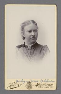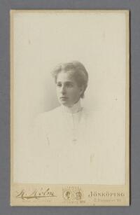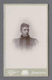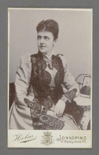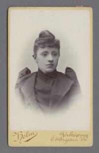 Porträtt föreställande Hedvig Westrin Fritt Upphov Holm, Hjalmar Hampus, 1860-1928 Utgivningsår 1890 Kategori BildBilderPorträttFotografier (påsiktsbilder)Visitkortsfotografier