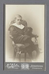 Porträtt föreställande Ingegerd Kreuger Fritt Upphov Holm, Hjalmar Hampus, 1860-1928 Utgivningsår 1900 Kategori BildBilderPorträttFotografier (påsiktsbilder)Visitkortsfotografier