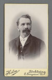 Porträtt föreställande Johan Albert Olsson Fritt Upphov Holm, Hjalmar Hampus, 1860-1928 Utgivningsår 1891 Kategori BildPorträttFotografierVisitkortsfotografierBilder