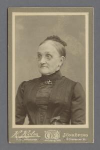 Porträtt föreställande Ann Björkman Fritt Upphov Holm, Hjalmar Hampus, 1860-1928 Utgivningsår 1890 Kategori BildBilderPorträttFotografier (påsiktsbilder)Visitkortsfotografier