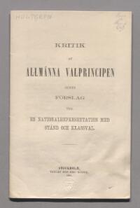 Kritik af allmänna valprincipen jemte förslag till en nationalrepresentation med stånd och klassval Fritt Upphov Hultgren, Olof Johan, 1827-1908 Utgivningsår 1865 Kategori Ej skönlitteratur