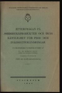 Efterfrågan på jordbruksprodukter och dess känslighet för pris- och inkomstförändringar Fritt Upphov Wold, Herman, 1908-1992 Utgivningsår 1940 Kategori Ej skönlitteratur