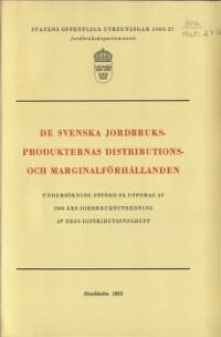 De svenska jordbruksprodukternas distributions- och marginalförhållanden Fritt Upphov 1960 års jordbruksutredning. Utgivningsår 1965 Kategori Offentlig resurs - Nivå ej specificeradEj skönlitteratur