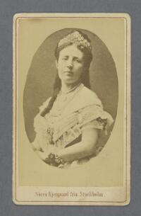 Porträtt på Karl XV i stort skägg och uniformsklädd i oval ram