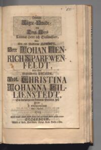 Frögde-dicht öfwer den i Swea nylig opgångne glädie-solen, den durchleuchtigste och högbohrne princesse Hedewig Sophia, Sweriges, Göthes och Wendes arfffurstinna, storfurstinna til Finnland, hertiginna vthi Skåne, Estland, Lijfland, Carelen, Brehmen, Vehrden, Stetin-Pommern, Cassuben och Wenden, furstinna til Rügen, princessa öfwer Ingermanland och Wiszmar, så och Pfaltzgrefwinna wid Rhein i Beyern, til Gülich Clewe och Bergen hertiginna etc. hwilkens hugnefulla födelse sig tildrog på Stockholms slått den 26 junij klock. 9. 45. min. E. M. A. 1681.