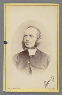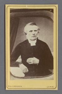 Porträtt föreställande kontraktsprost Gustaf Thunblad Fritt Upphov Lindgren, Berndt August, 1852-1904 Utgivningsår 1860 Kategori BildBilderPorträttFotografier (påsiktsbilder)Visitkortsfotografier