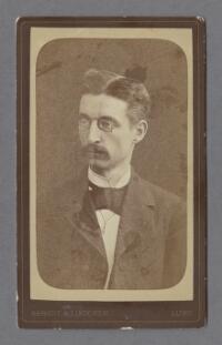 Porträtt föreställande bankkamrer Albert Sjövall Fritt Upphov Lindgren, Berndt August, 1852-1904 Utgivningsår 1885 Kategori BildBilderPorträttFotografier (påsiktsbilder)Visitkortsfotografier