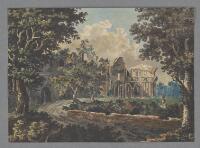 Romantiskt landskap med klosterruin Fritt Upphov Lorichs, Gustaf Daniel, 1785-1855 Utgivningsår 1800 Kategori BildBilderAkvarellerLandskapsbilder