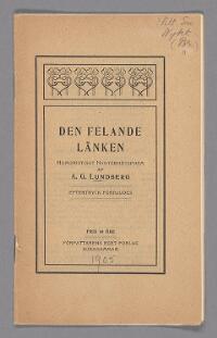 Den felande länken, humoristiskt nykterhetspoem Fritt Upphov Lundberg, A. G., verksam ca 1900 Utgivningsår Ingen uppgift Kategori Skönlitteratur