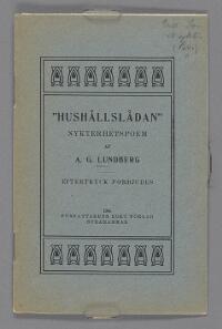 "Hushållslådan", nykterhetspoem Fritt Upphov Lundberg, A. G., verksam ca 1900 Utgivningsår Ingen uppgift Kategori Skönlitteratur