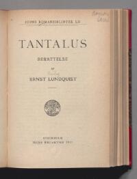 Tantalus, berättelse Fritt Upphov Lundquist, Ernst, 1851-1938 Utgivningsår 1911 Kategori Skönlitteratur