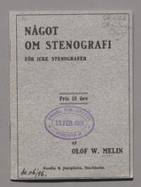 Något om stenografi för icke stenografer Fritt Upphov Melin, Olof W., 1861-1940 Utgivningsår 1905 Kategori Ej skönlitteratur