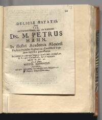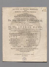 Applausus votivus ad virtutis et eruditionis coronam, qvam promotor promotor vir amplissimus & excellentissimus, m. Petrus Hahn, Phys. Professor celeberrimus, contulit viris clarissimis dn. Johanni Rogbergio, dn. Jonæ Mollino, dn. Johanni Helino, dum summos in philosophia honores capessebant. Die 26. Novembr. Anno 1694.