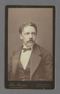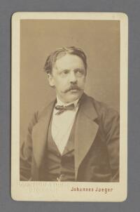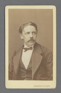 Porträtt föreställande författaren Viktor Rydberg Fritt Upphov Jaeger, Johannes, 1832-1908 Utgivningsår 1870 Kategori BildBilderPorträttFotografier (påsiktsbilder)Visitkortsfotografier