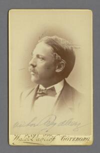 Porträtt föreställande författaren Viktor Rydberg Fritt Upphov Dahllöf, Waldemar, 1844-1935 Utgivningsår 1870 Kategori BildBilderPorträttFotografier (påsiktsbilder)Visitkortsfotografier