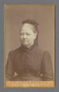 Porträtt föreställande Signe Ericsson Fritt Upphov Söderström, Frithiof, 1851-1919 Utgivningsår 1884 Kategori BildBilderPorträttFotografier (påsiktsbilder)Visitkortsfotografier