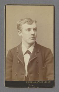 Porträtt föreställande folkskolläraren Hilmer Thorelius Fritt Upphov Söderström, Frithiof, 1851-1919 Utgivningsår 1882 Kategori BildBilderPorträttFotografier (påsiktsbilder)Visitkortsfotografier