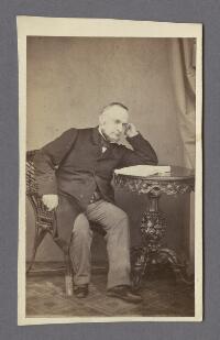 Porträtt föreställande författaren Martin Schück sittande vid bord