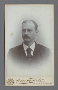 Porträtt föreställande överstelöjtnant Ferdinand Schenström Fritt Upphov Schröder, Anna, 1869-1951 Utgivningsår 1900 Kategori BildBilderPorträttFotografier (påsiktsbilder)Visitkortsfotografier