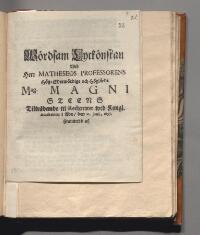 Concentus votivus in honorem viri præclarissimi dn. M. Magni Steen, Academiæ Aboensis antehac secretarii spectatissimi, cum ad professionem extraordinariam solenni pompa introduceretur. Die 19. Julii, anni 1688. Eorum qui ejus nomini sunt devincti.