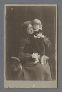 Porträtt föreställande författare Marika Stiernstedt med ett barn Fritt Upphov Hamnqvist, Herman, 1865-1946 Utgivningsår 1902 Kategori BildBilderPorträttFotografier (påsiktsbilder)VisitkortsfotografierGrupporträttBarnporträtt