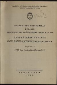 Betänkande med förslag rörande organisation och avlöningsförhållanden m. m. vid Lantmäteristyrelsen och länslantmäterikontoren Fritt Upphov Sverige, 1947 års lantmäterikommitté Utgivningsår 1948 Kategori Ej skönlitteratur