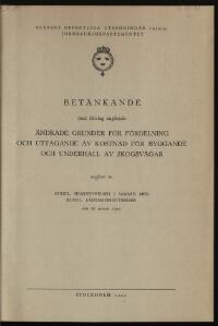 Betänkande med förslag angående ändrade grunder för fördelning och uttagande av kostnad för byggande och underhåll av skogsvägar Fritt Upphov Sverige., Skogsstyrelsen Utgivningsår 1949 Kategori Offentlig resurs - Nivå ej specificeradEj skönlitteratur