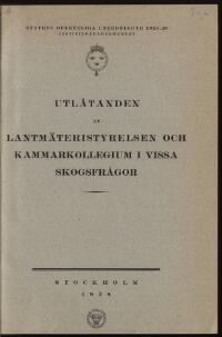 Utlåtanden av lantmäteristyrelsen och kammarkollegium i vissa skogsfrågor Fritt Upphov Sverige., Lantmäteristyrelsen. Utgivningsår 1929 Kategori Ej skönlitteratur