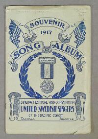 Souvenir program of the Sixth Bi-ennial Musical Festival and Convention, held in Tacoma and Seattle, Wash. by the United Swedish Singers of the Pacific Coast, July 11th-15th, 1917 Fritt Upphov United Swedish Singers of the Pacific Coast., Musical Festival and Convention Utgivningsår 1917 Kategori Ej skönlitteratur