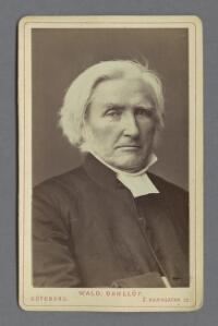 Porträtt föreställande domprost Peter Wieselgren Fritt Upphov Dahllöf, Waldemar, 1844-1935 Utgivningsår 1870 Kategori BildBilderPorträttFotografier (påsiktsbilder)Visitkortsfotografier