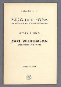 Färg och form, Malmtorgsgatan 10, februari 1937, utställning Carl Wilhelmson (perioden 1918-1928) Fritt Upphov Wilhelmson, Carl, 1866-1928 Utgivningsår 1937 Kategori Ej skönlitteratur