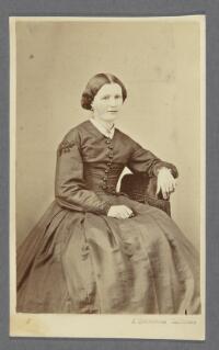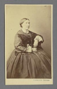 Porträtt föreställande Lotten Svedelius Fritt Upphov Zetherström, Amanda, 1829-1891 Utgivningsår 1860 Kategori BildBilderPorträttFotografier (påsiktsbilder)Visitkortsfotografier