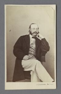 Porträtt föreställande landshövdingen Axel Svedelius sittande i stol Fritt Upphov Zetherström, Amanda, 1829-1891 Utgivningsår 1860 Kategori BildBilderPorträttFotografier (påsiktsbilder)Visitkortsfotografier